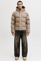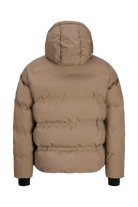 Denna vadderade jacka håller dig varm och skön när temperaturen sjunker. Jackan har lång ärm och en huva med justerbar dragsko som ger extra skydd mot väder och vind. Med sitt slitstarka vävda tyg förblir plaggformen stabil utan att töjas ut. Ribbstickade muddar vid ärmarna bidrar till en bra passform och skyddar mot kalla drag. Jackan är försedd med dragkedja framtill för enkel stängning. Den korta längden gör den lätt att bära och kombinera med olika kläder. Insidan är klädd med en bekväm polyesterfoder som tillsammans med det syntetiska fiberfodret ger både en lätt känsla och varmt skydd.