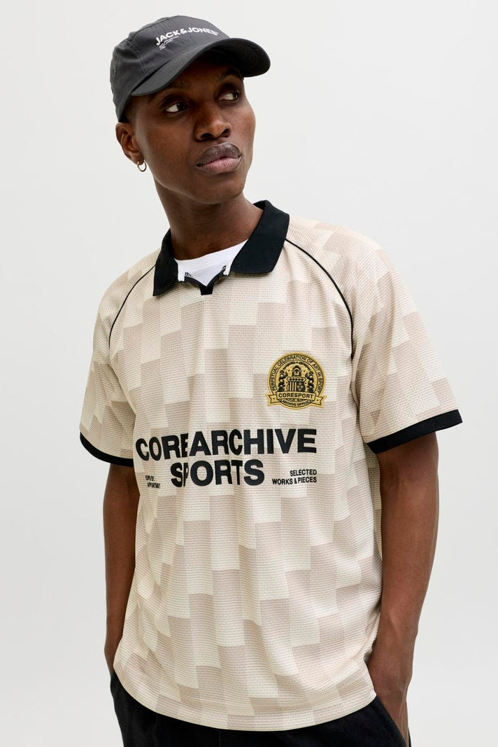 Denna Football AOP Mesh Tee är en luftig och avslappnad t-shirt med korta ärmar och krage i polomodell. Den har en loose fit som gör den bekväm och lätt att bära under varma dagar. T-shirten är tillverkad i 100% polyester vilket ger en mjuk och slitstark känsla. Den har ett heltäckande tryck som ger en sportig och modern look, perfekt för en casual stil.