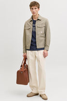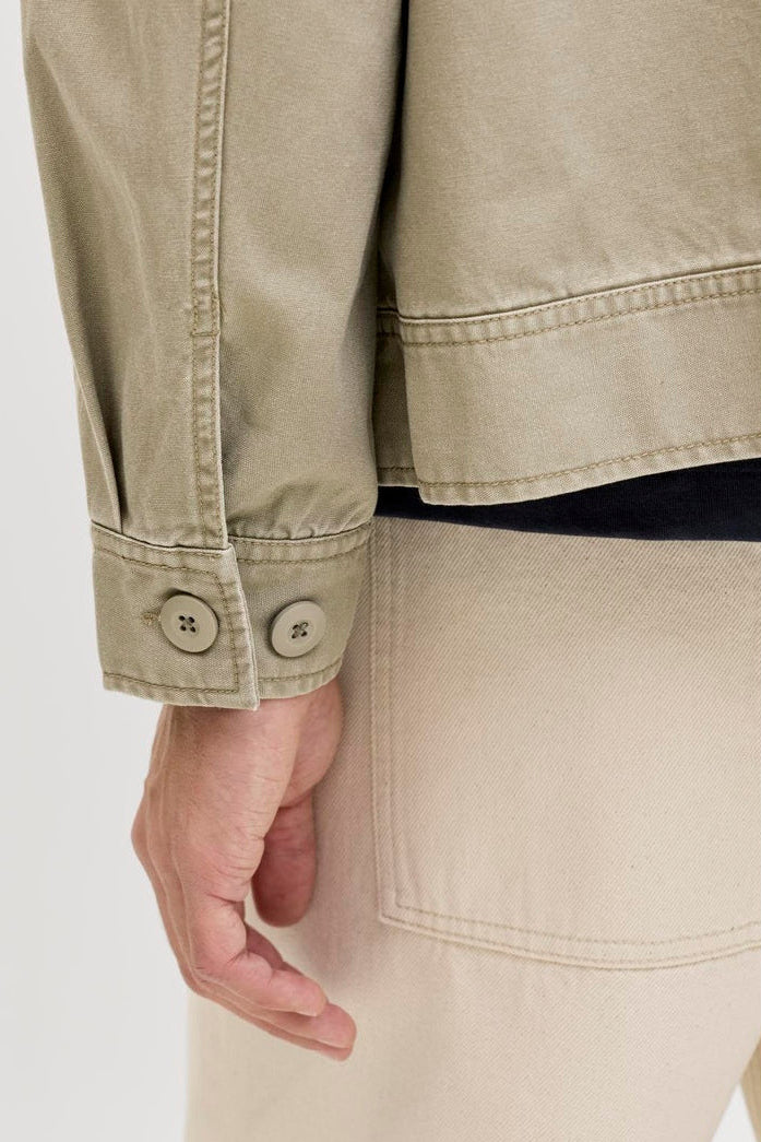 Denna jacka är tillverkad i ett starkt och hållbart vävt tyg som inte töjer sig som stickade tyger. Den har en kort längd och erbjuder ett avslappnat men kvalitativt utseende för vardagsbruk. Jackan har lång ärm med knäppta muddar, en spridd krage och stängs med dragkedja. Bröstfickor med knappstängning ger både funktionalitet och stil.
