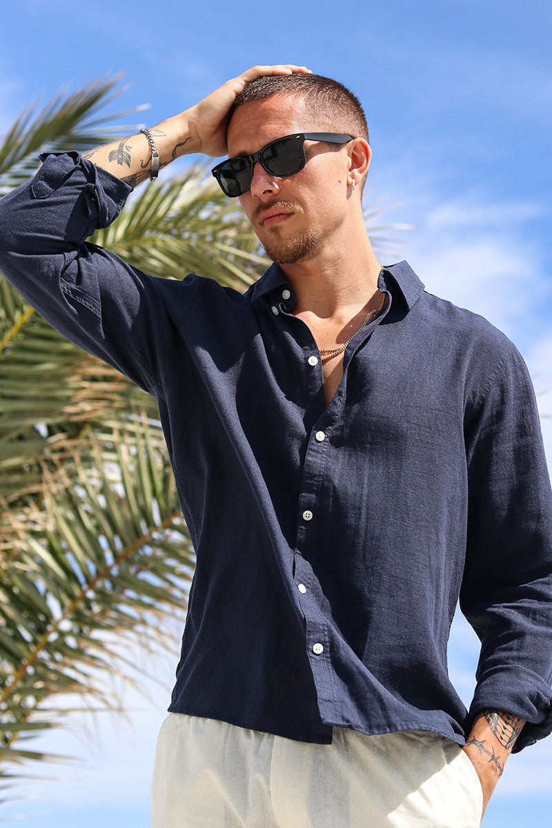Enea Allan Linen Shirt LS Insignia Blue