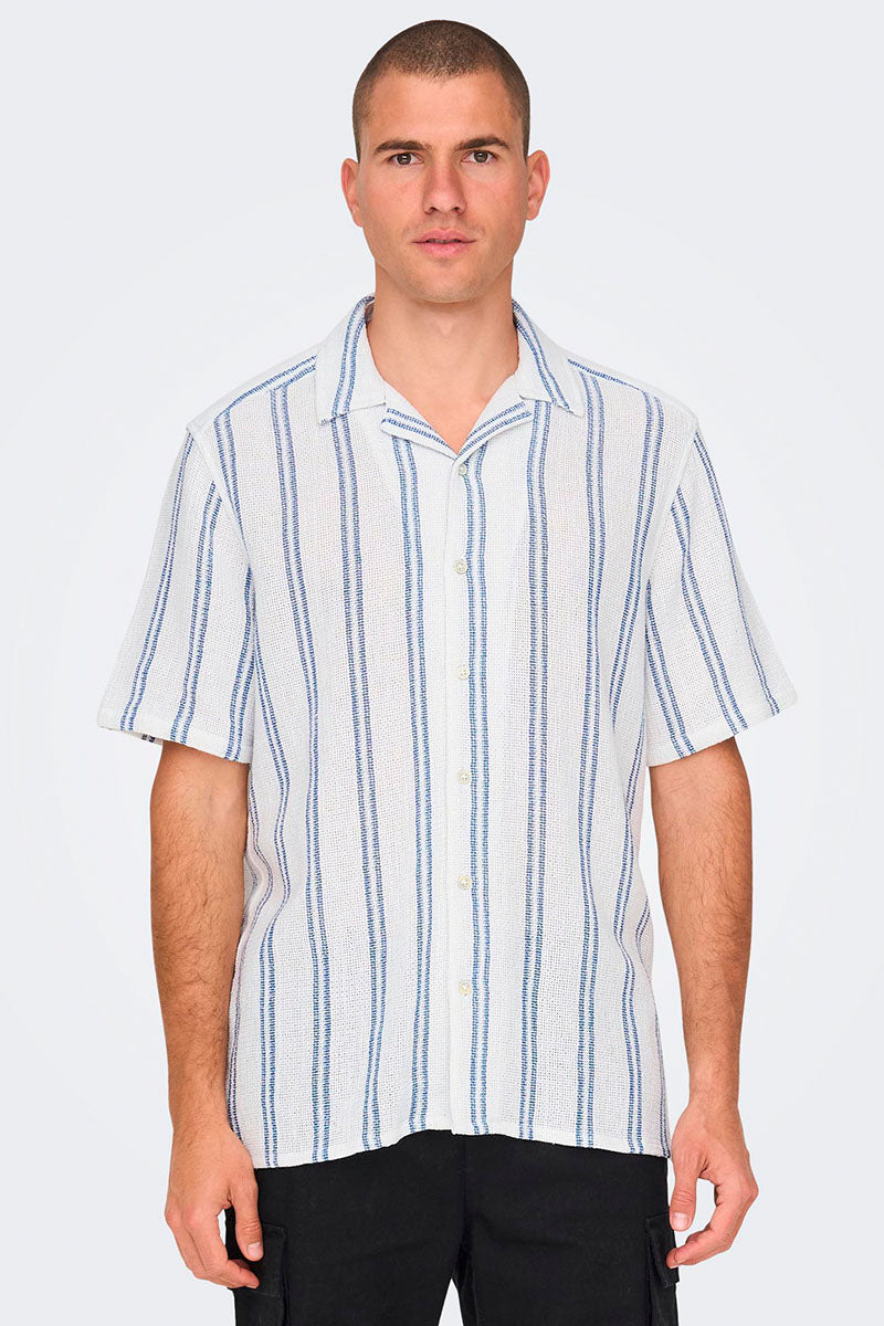 Trev Reg Structure Stripe SS Shirt Cloud Dancer