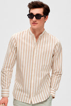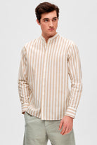 SLHSLIMNEW-LINEN SHIRT LS BAND W Kelp Stripes