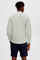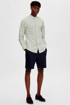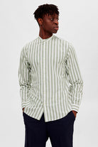 SLHSLIMNEW-LINEN SHIRT LS BAND W Desert Sage Stripes