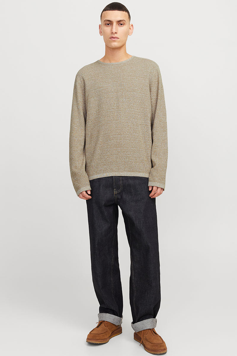 - Beige stickad tröja med långa ärmar i relaxed fit