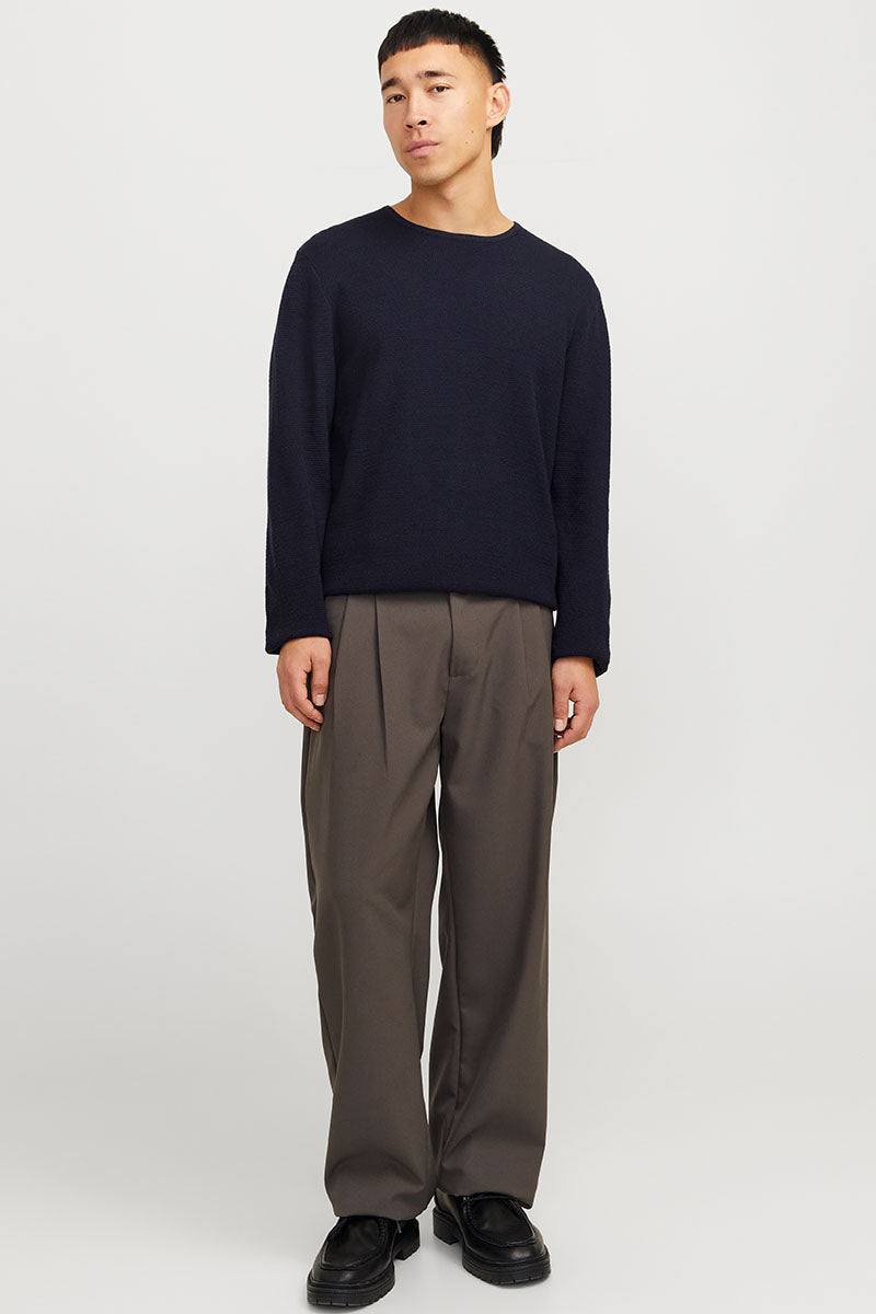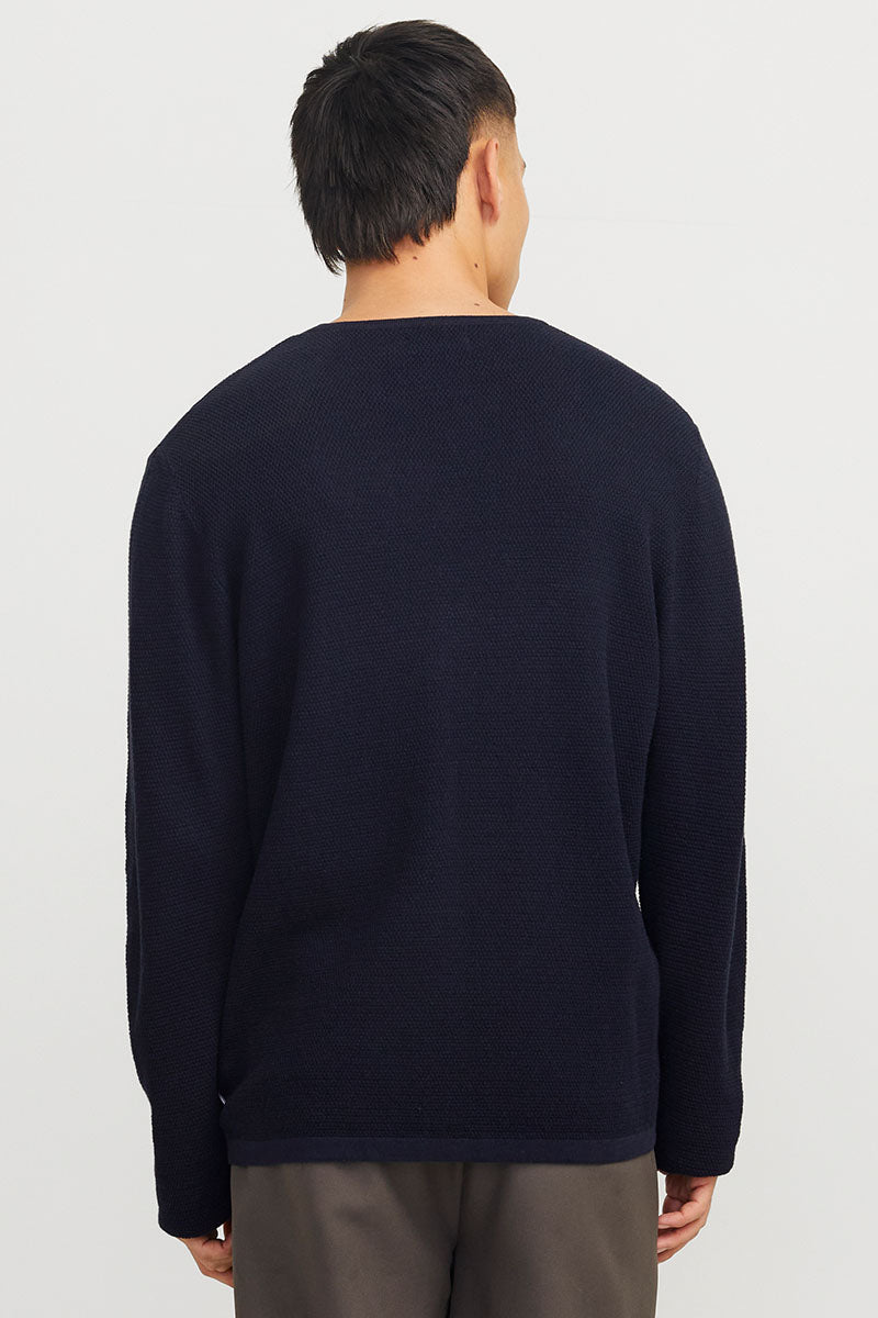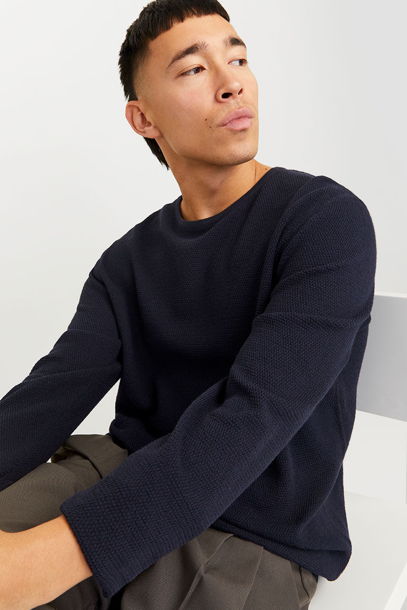 - Mörkblå stickad tröja med långa ärmar i relaxed fit
