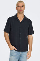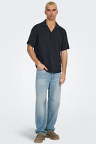 Latham Resort Linen Structure Shirt Dark Navy