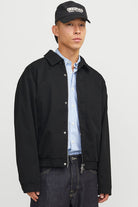 - Kort jacka med resår i nederkant och ärmar samt en spridd krage