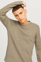 - Beige långärmad tröja i strukturpassform
