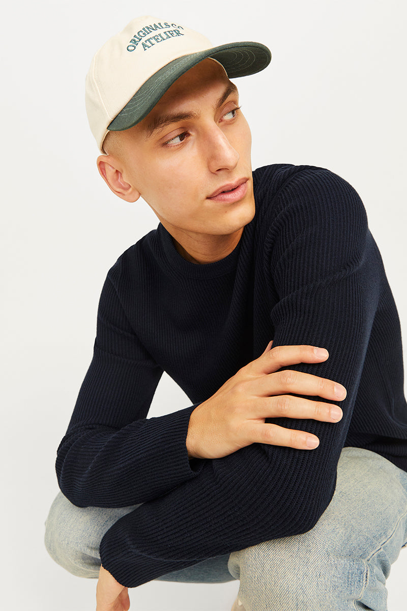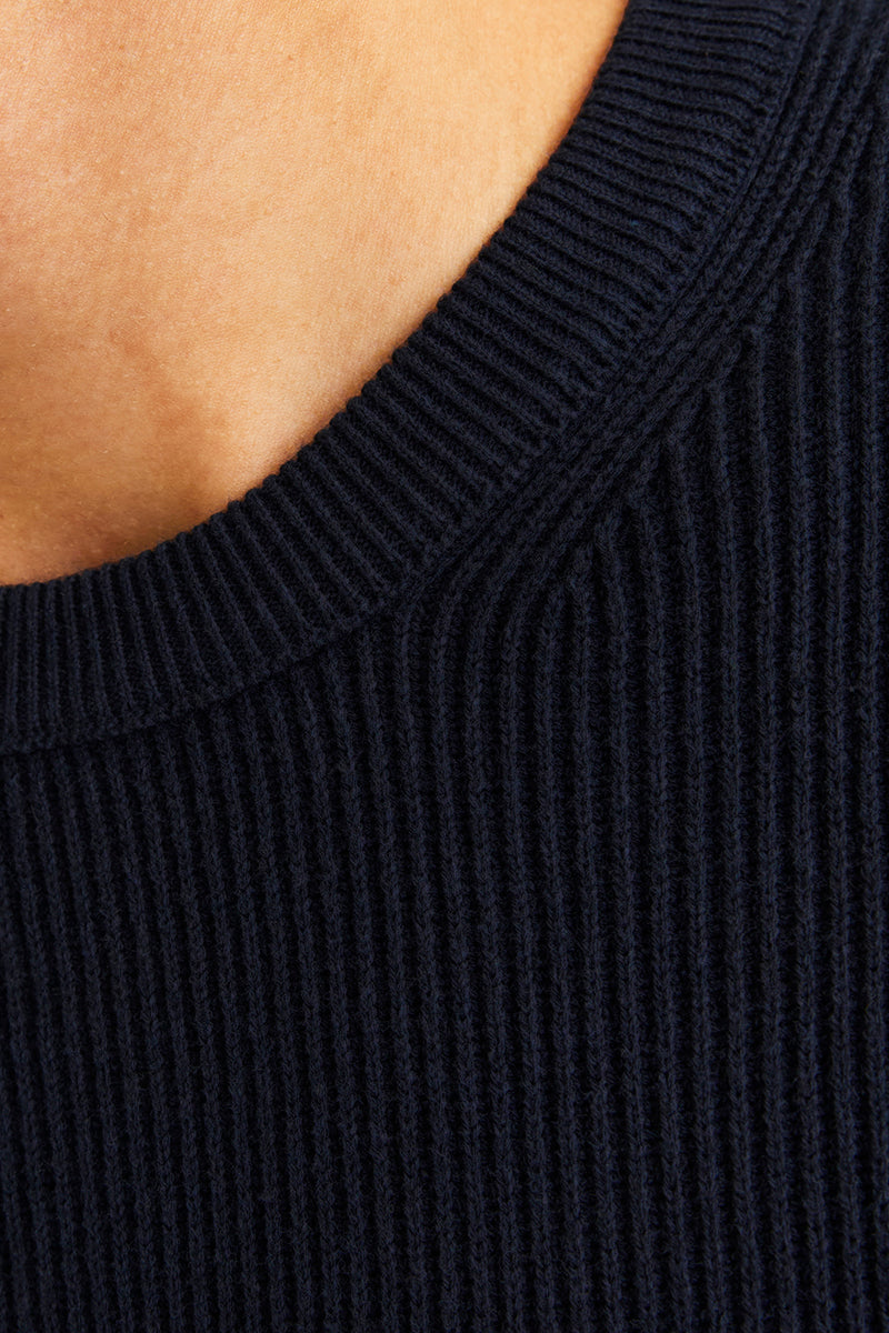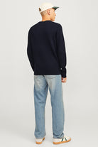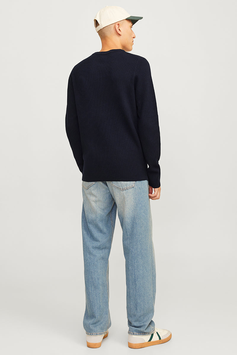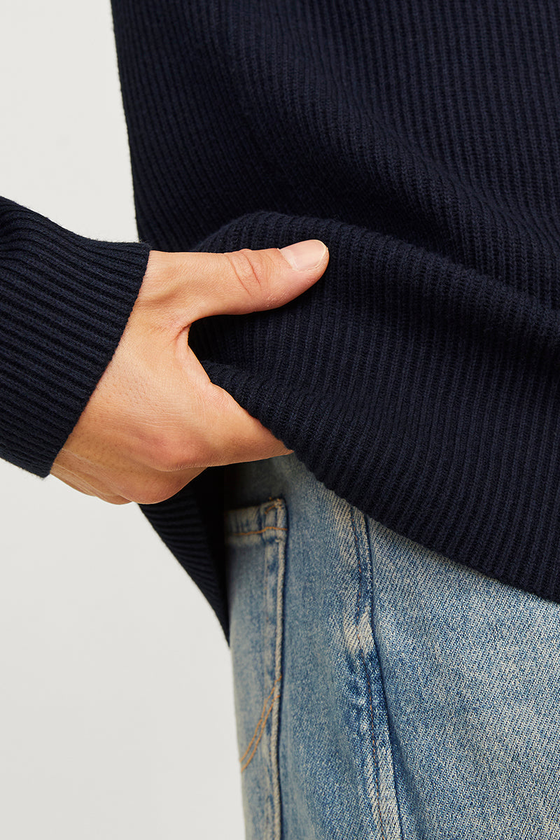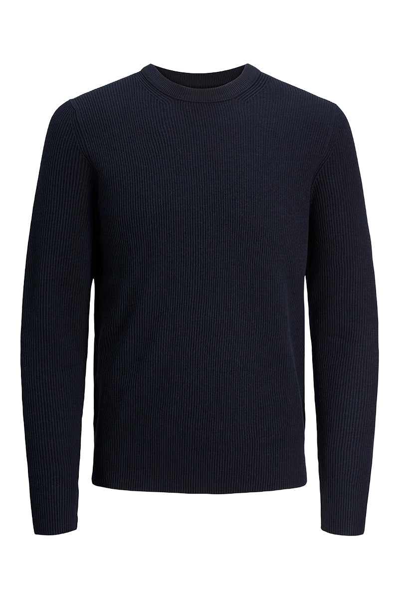 - Mörkblå långärmad stickad tröja i strukturpassform