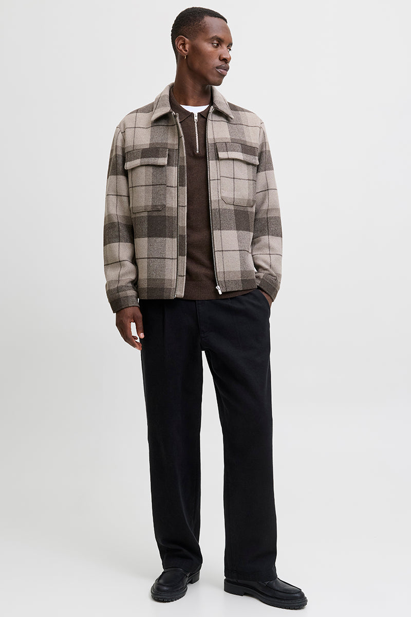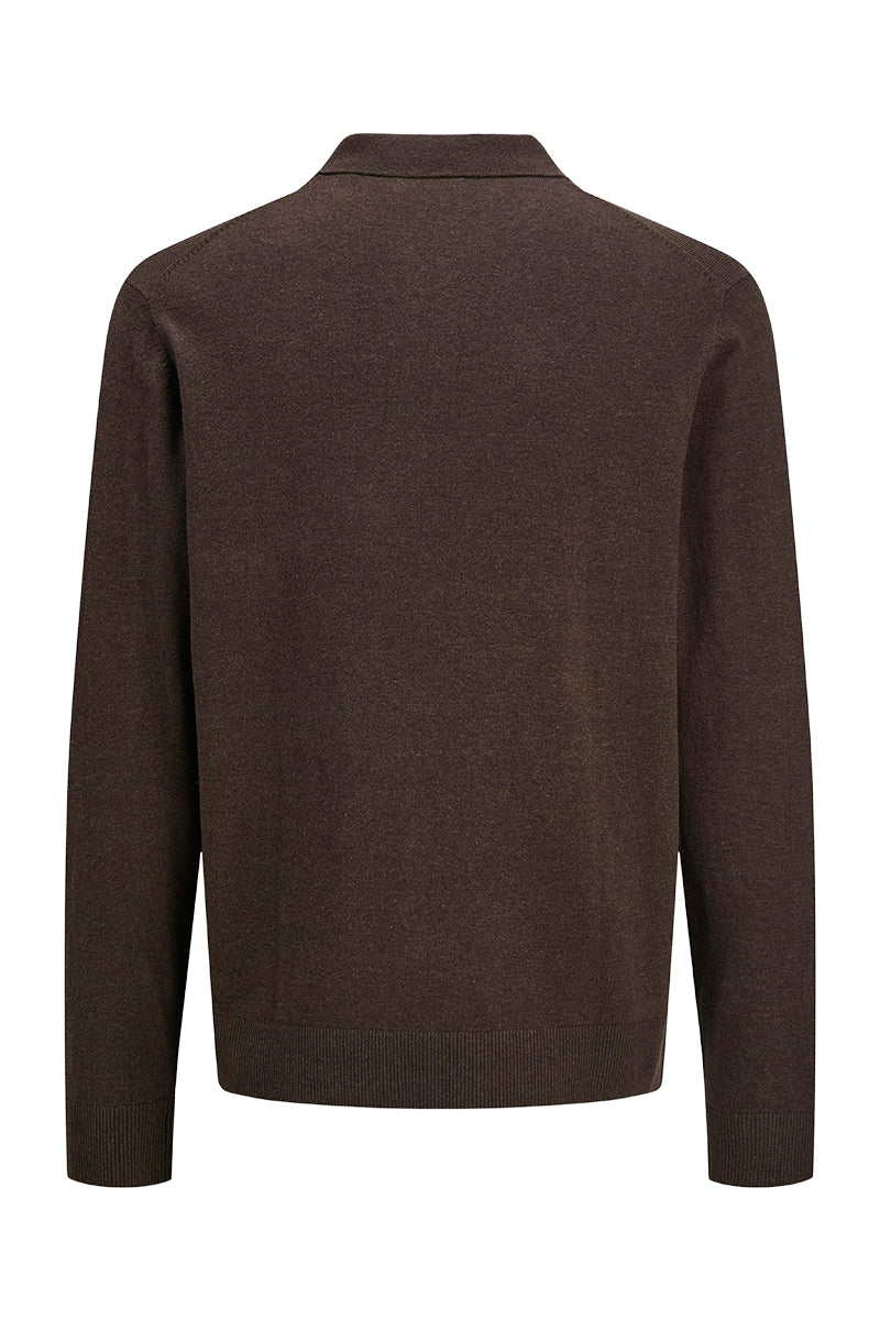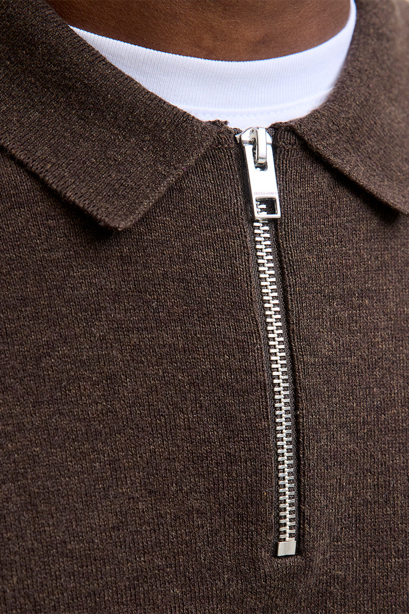 - Brun stickad tröja med polokrage och half zip