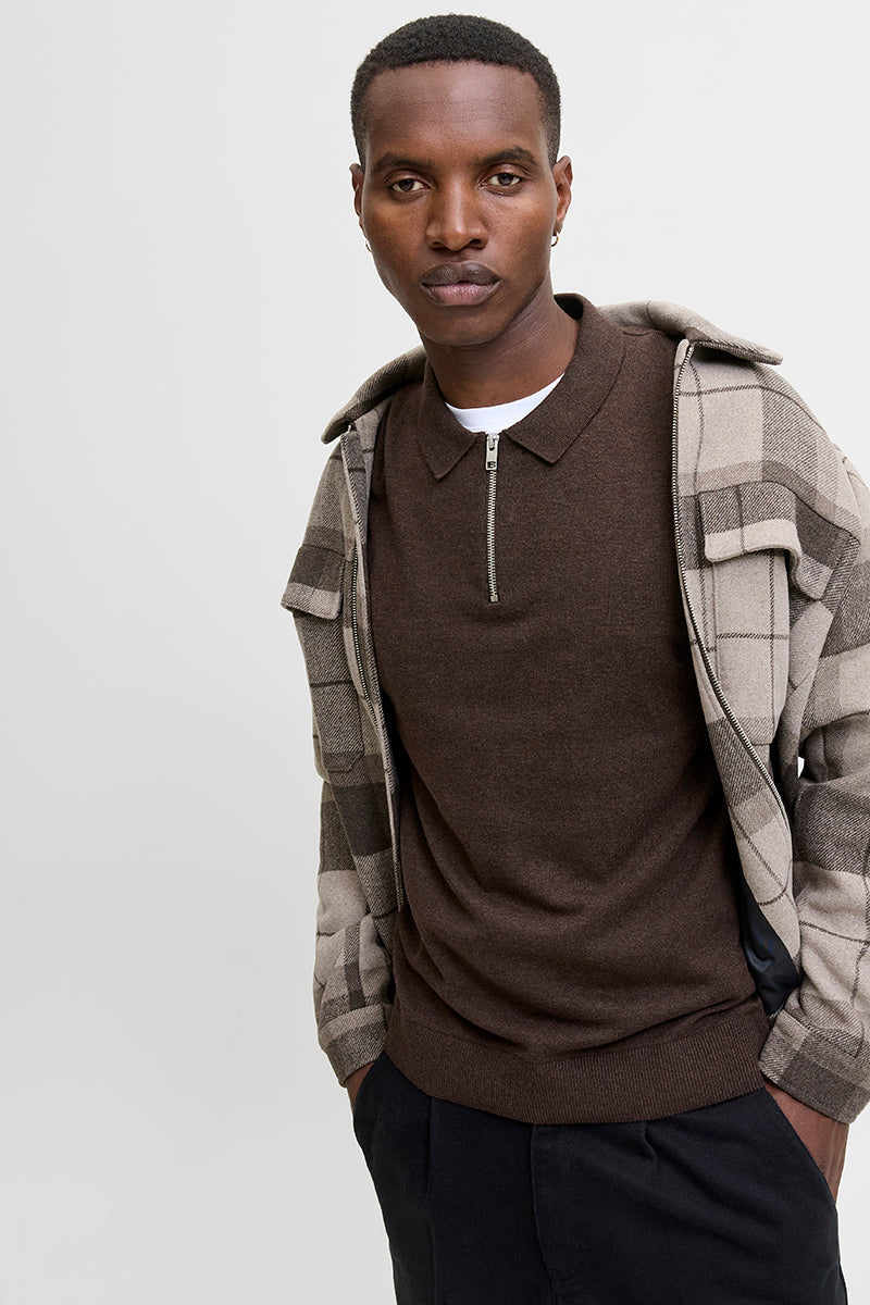 Emil Knit Polo Half Zip LS Mulch