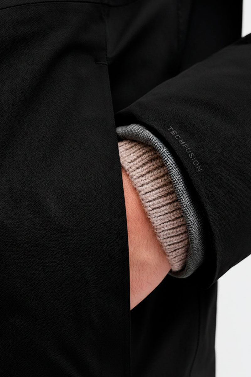 - Jackan har 2 sneda framfickor samt en bröstficka. Jackan är vind- och vattenavvisande