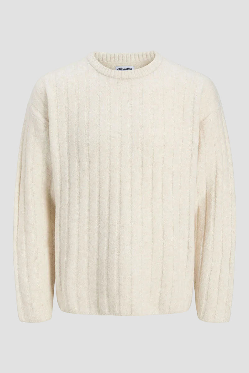 - Flatstickad tröja med rund halsringning och långa ärmar