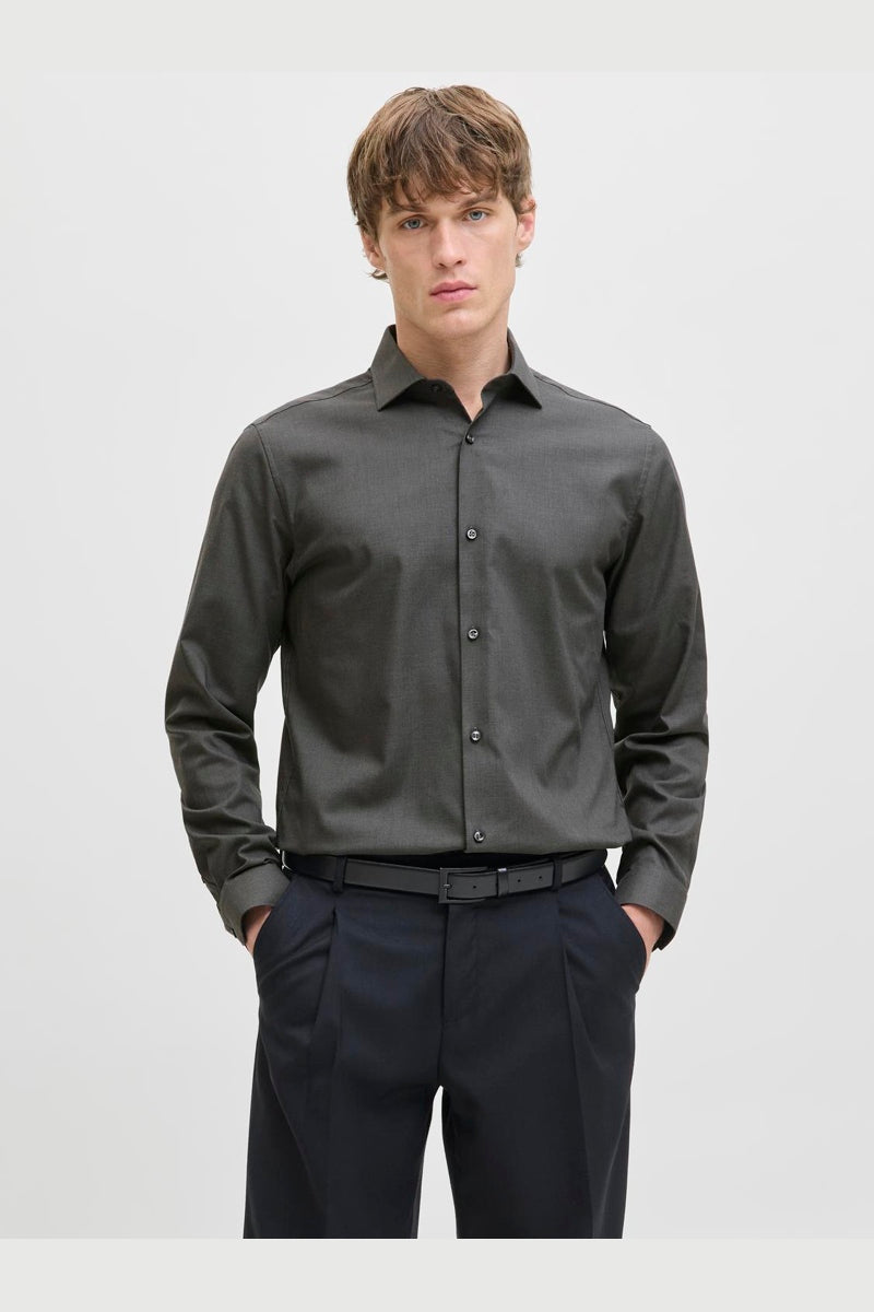 - Mörkgrå långärmad skjorta i slim fit