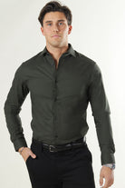 - Mörkgrön långärmad skjorta i slim fit