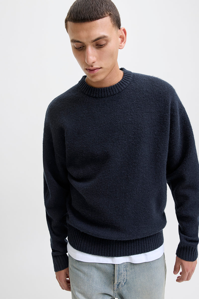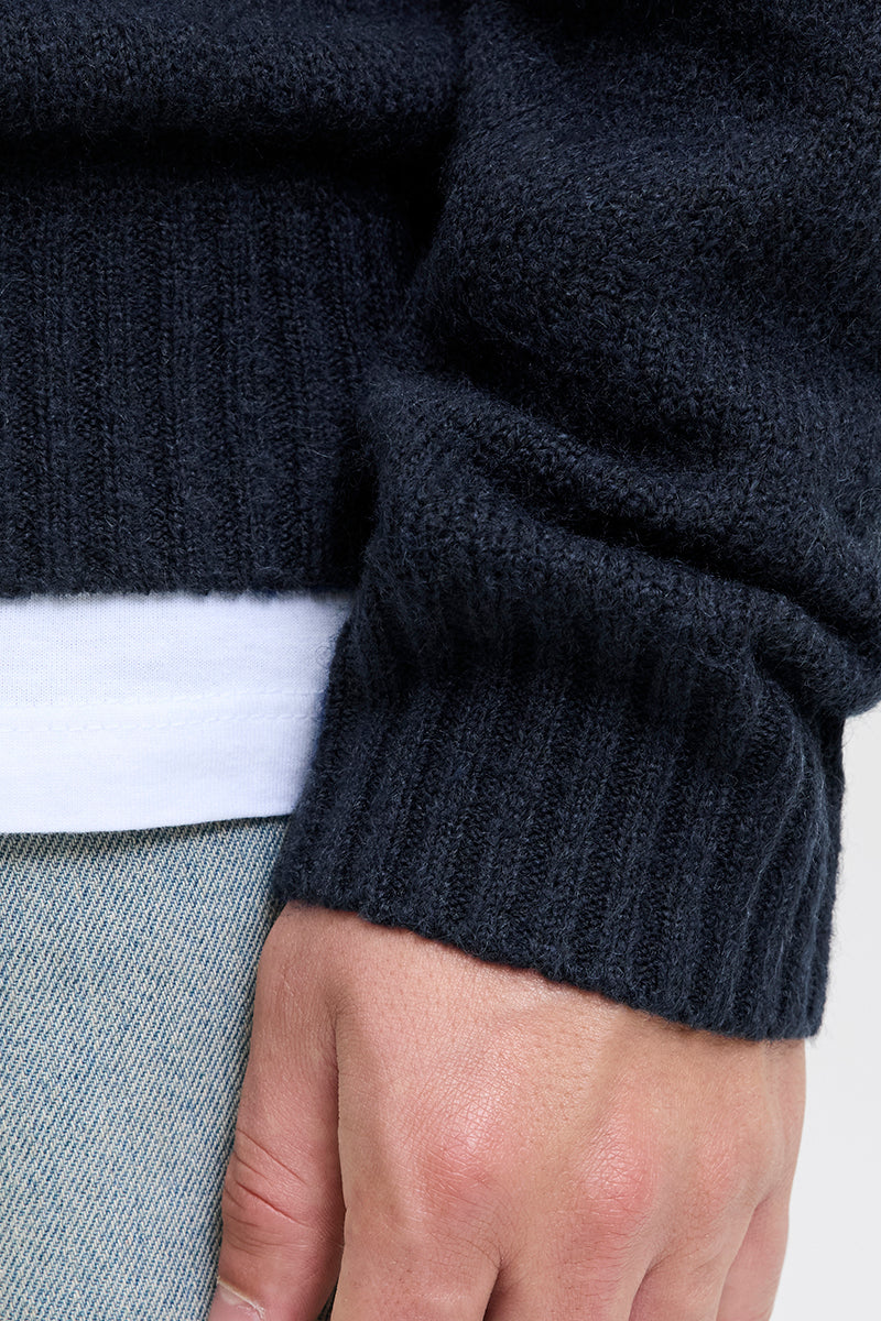 - Mörkblå ärmlång stickad tröja