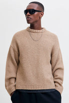 - Tröjan har rund hals, långa ärmar och en kraftig struktur. Dessutom finns ribbade muddar vid ärmar och nederkant.