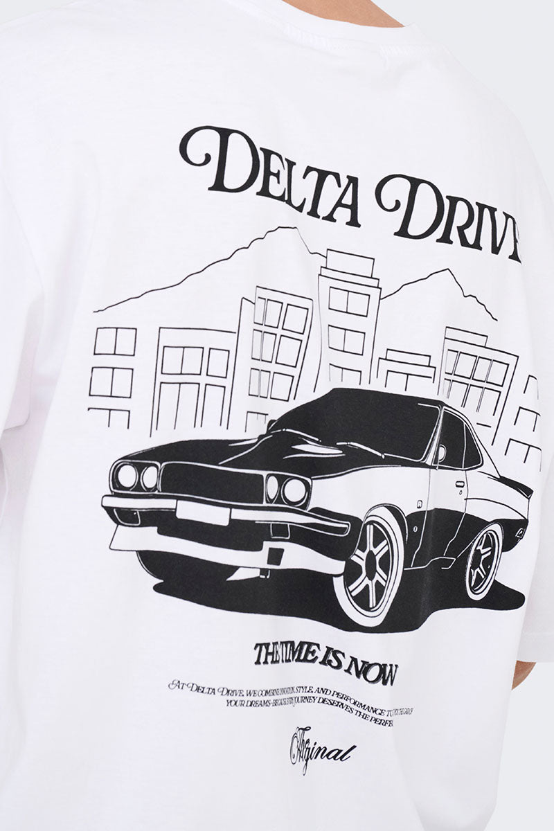 Nathan Backprint Relaxed Fit Tee Bright White Delta Drive