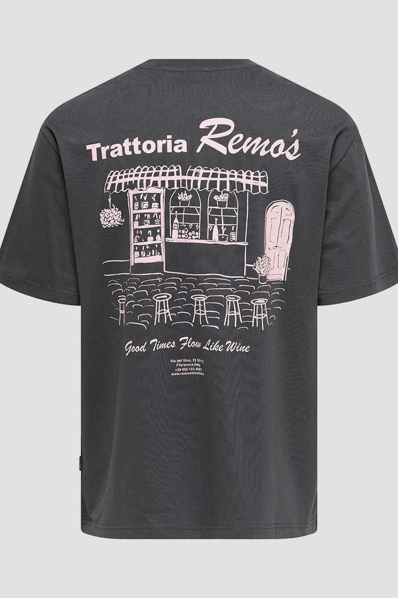 Nathan Backprint Relaxed Fit Tee Grey Pinstripe Remos