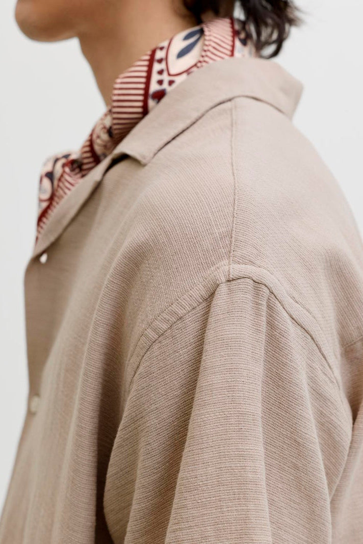 Den här resortskjortan är ett lätt och luftigt plagg perfekt för en stilren sommargarderob. Den har korta ärmar och en avslappnad passform som ger både komfort och rörelsefrihet. Skjortan är tillverkad av ett vävt tyg som är starkt och hållbart, utan den töjbarhet som stickade material ofta har. Kragen är en klassisk resortkrage som bidrar till den lediga och samtidigt sofistikerade looken.