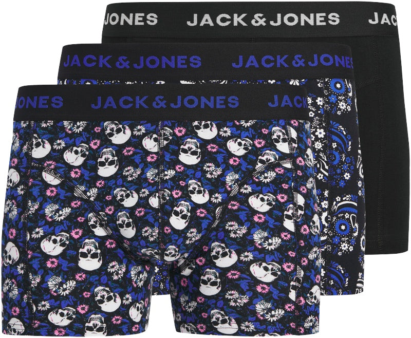 Flower Skull Trunks 3 Pack Black