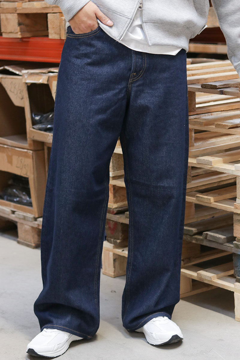 Dessa Wide fit-jeans är utformade med klassisk femficksdetalj, vilket ger en tidlös och enkel stil som påminner om originaldesignen. De har en midjeresning med knappgylf och en rymlig passform med baggy lår, knän och vida benslut. Jeansen är tillverkade av bomull, ett naturligt och mjukt material som andas väl, vilket gör dem bekväma att bära hela dagen. Tvätten är genomsköljd för att ta bort överflödig färg och skapa en mjuk känsla samt ett rent utseende.