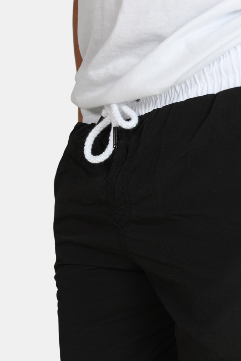 Badshorts från Urban Classics. Retro badbyxor i svart och vit färg. På vänstra benet är det påsytt ett 'Urban Classics' logo i gummi. Kommer med vita snören och ett invändigt nät. Utstyrd med två framfickor och en bakficka som kan stängas med kardborrband. Kvalité: ytter material: 100% nylon, Foder; 100% polyester.