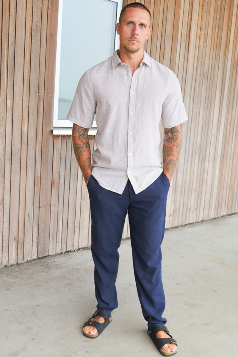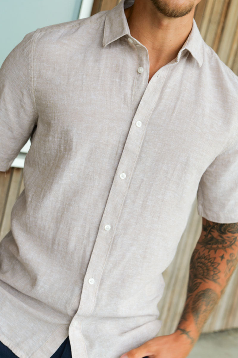 Caiden SS Linen Shirt Chinchilla