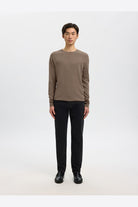En tidlös och bekväm tröja med rund halsringning som passar perfekt i den vardagliga garderoben. Tröjan har lång ärm och ribbade muddar som ger en behaglig passform. Den är skapad i ett stickat material som består av 50% bomull och 50% ekologisk bomull, vilket bidrar till en mjuk och hållbar kvalitet.