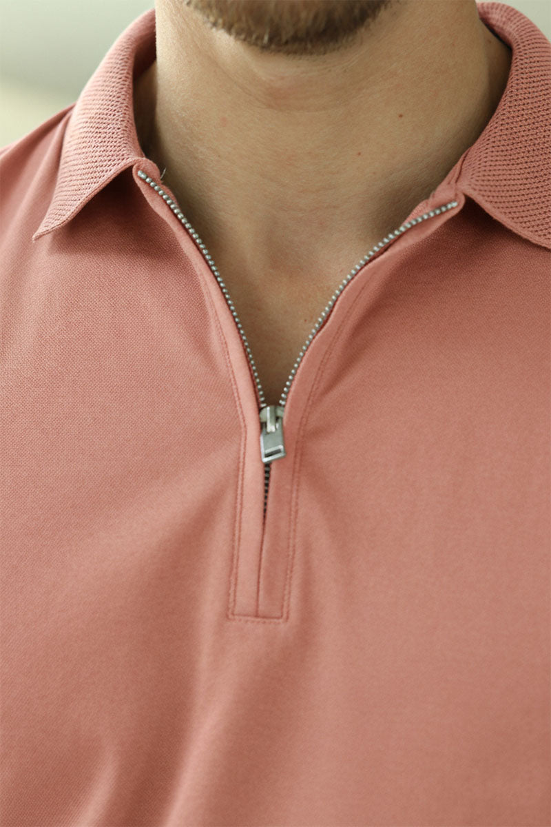 Fave Zip Polo Kortärmad Rosagryning
