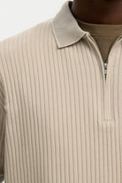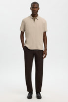 Denna strukturerade pikétröja erbjuder en bekväm passform med korta ärmar och en klassisk polokrage, perfekt för en avslappnad men ändå stilren look. Tyget är en mjuk blandning av återvunnen polyester, ekologisk bomull och elastan som ger både flexibilitet och hållbarhet. Färgen är en ljus nyans av oatmeal som enkelt kan kombineras med flera olika plagg.