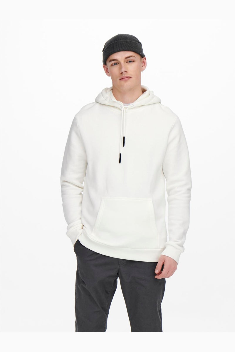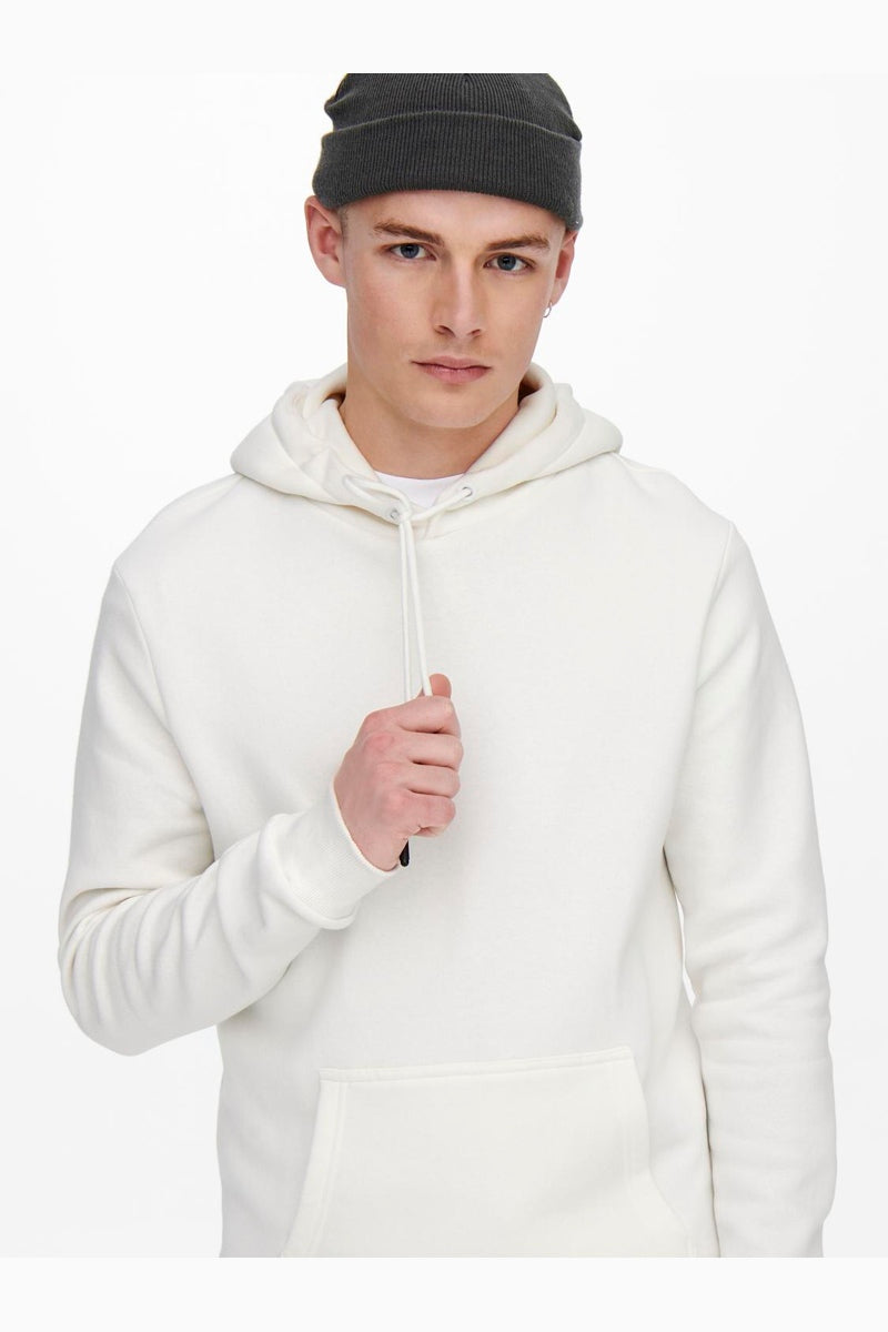 Den här hoodien är designad för bekväm och tidlös vardagsstil med en supermjuk insida som ger både värme och komfort. Den har en vanlig passform med huva och långa ärmar, samt en rymlig kangaruficka framtill som är praktisk och ger en avslappnad look. Färgen Cloud dancer är en mjuk, ljus nyans som passar lätt till många olika outfits.