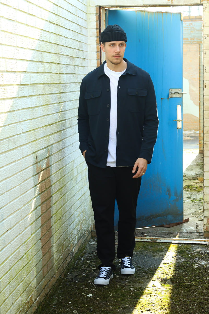 Denna overshirt i dark navy är ett stilrent plagg som passar utmärkt för både vardag och mer formella tillfällen. Med en klassisk skjortkrage och knäppning framtill kombinerar den funktion och design på ett elegant sätt. Den långärmade skjortan har en regular fit som ger en bekväm och avslappnad passform. Tack vare materialmixen känns plagget mjukt mot huden samtidigt som det behåller sin hållbarhet och form.