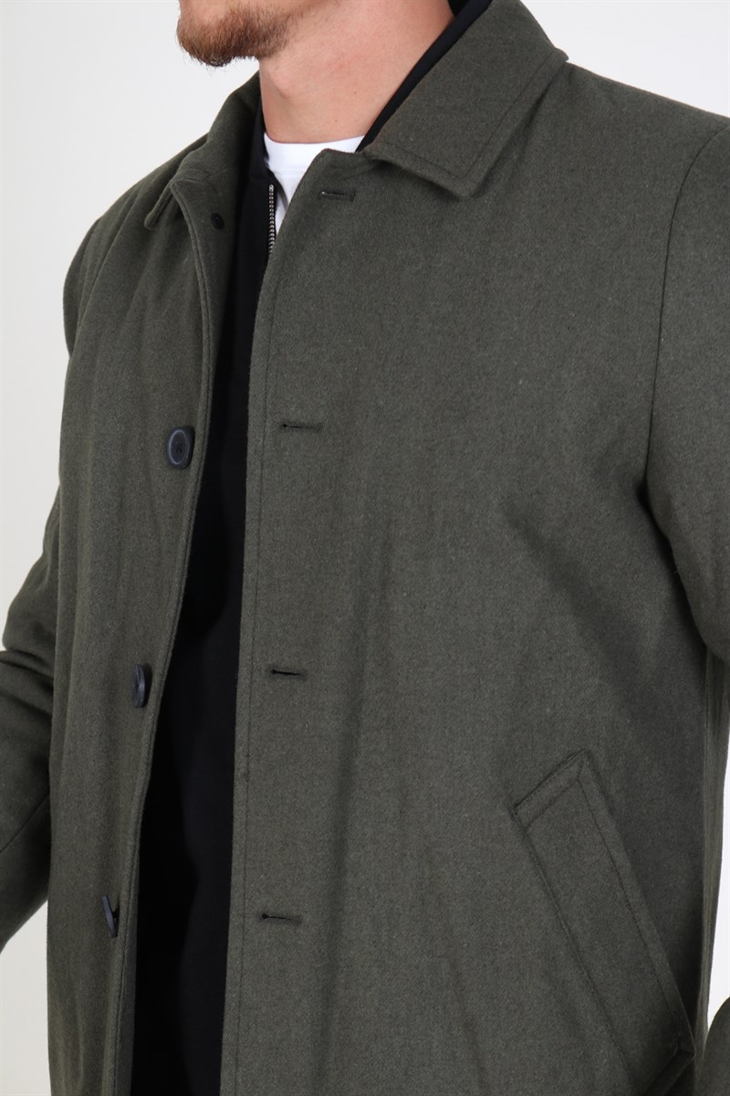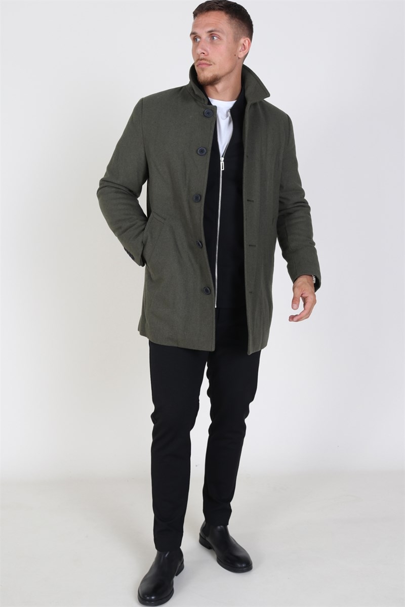 Ullkappa från Clean Cut. Kommer i en dusty green utgåva. Den stängs med klassiska svarta knappea. Jackan har en vanlig skjortkrage. Kommer med två sidfickor, och en invändig ficka. Den har svarta detalj knappar på ärmarna och ett litet Clean Cut logo. Kappan kommer med vadderad foder. Kvalité: Yttre: 50% polyester og 50% ull. Inre: 100% polyester.