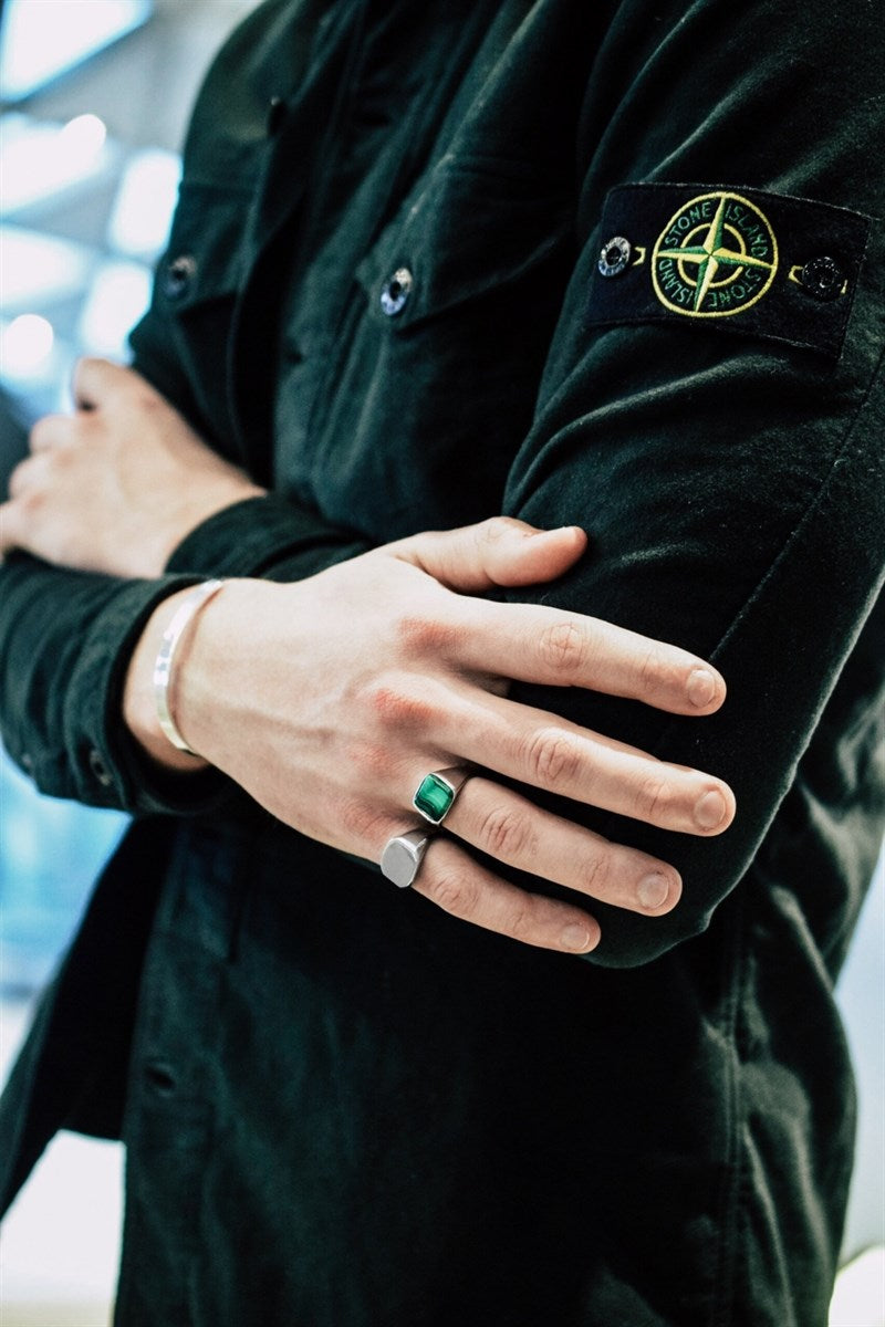 Silver ring från Northern Legacy. Högpolerad silverring med en 14x14 mm fyrkantig topp. Ringen är i 316L stål och det är ingraverat "Northern Legacy" i ringen.