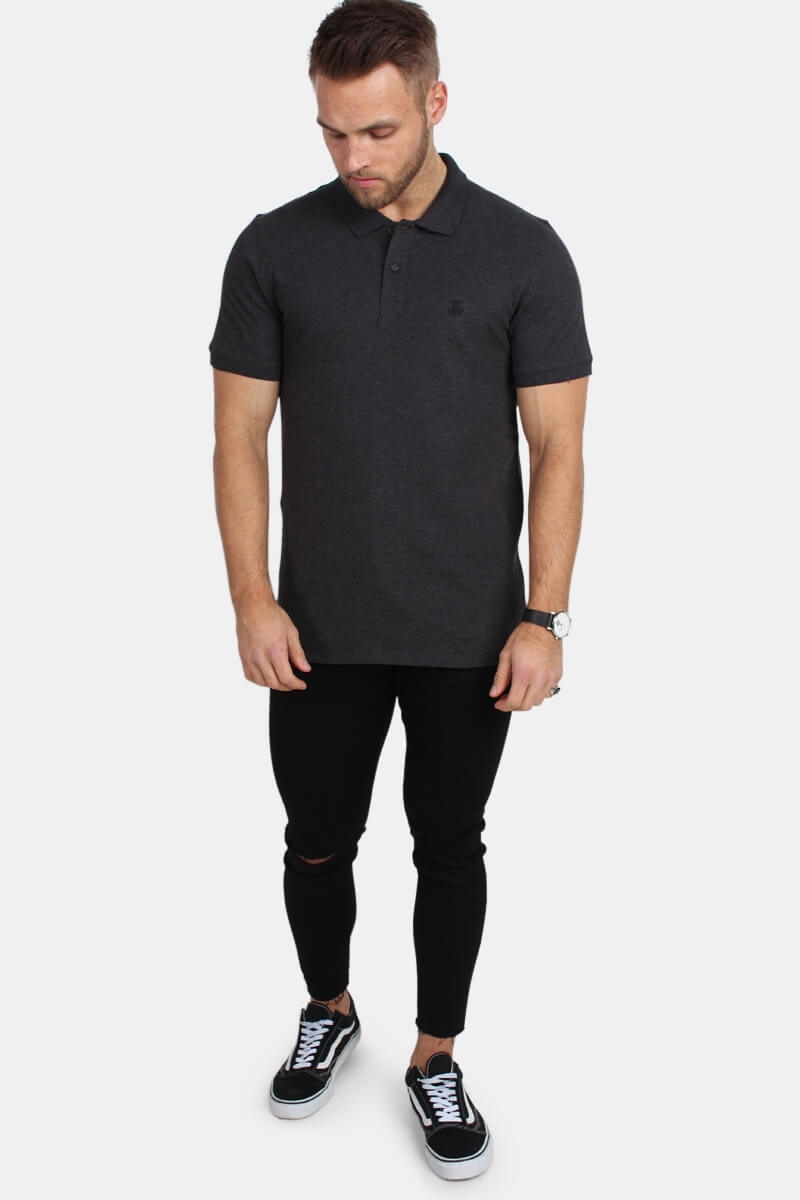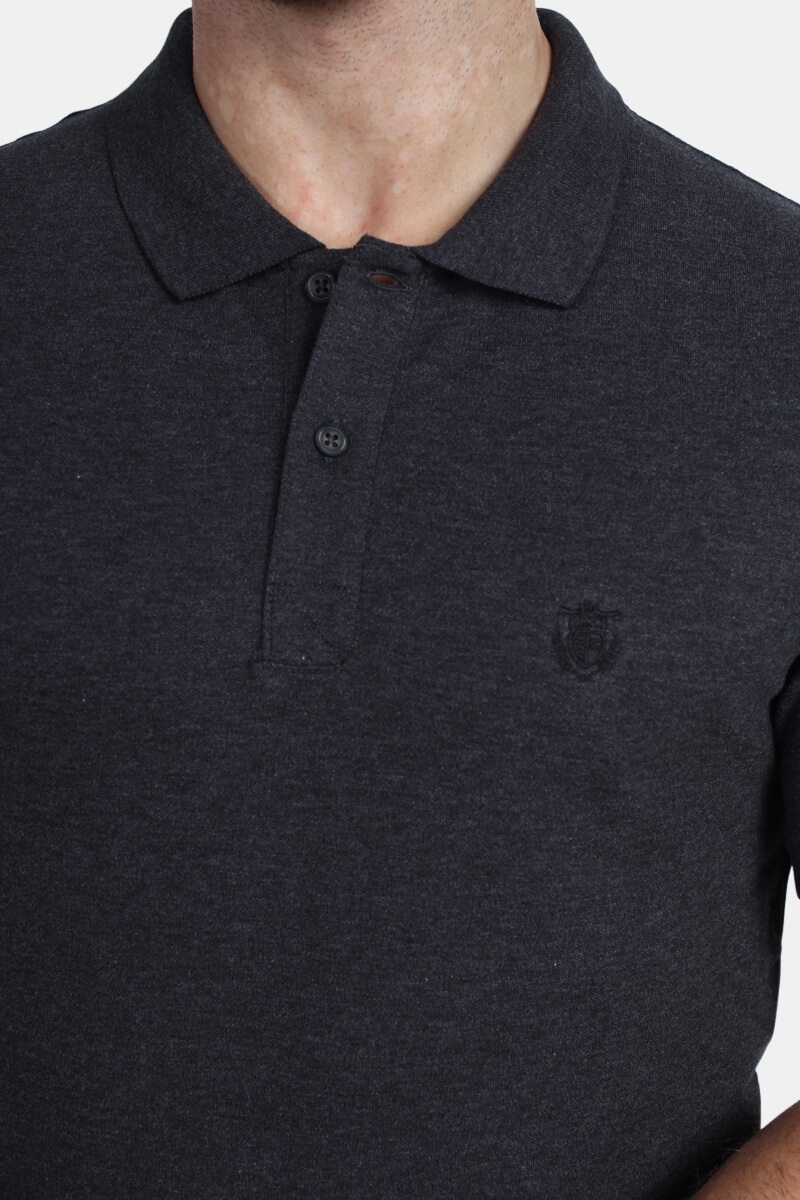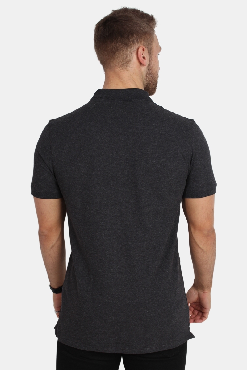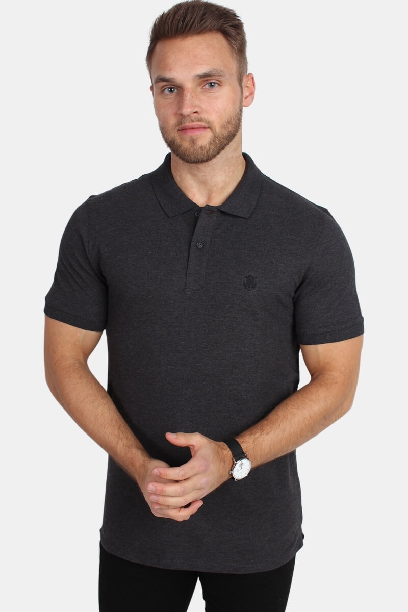 Selected Piké Mörkgrå Melerad. Ljusgul broderad logga på bröstet. Klassisk krage med mörka knappar. Kortärmad med små slitsar i sidorna. 57% bomull, 38% polyester och 5% elastan.