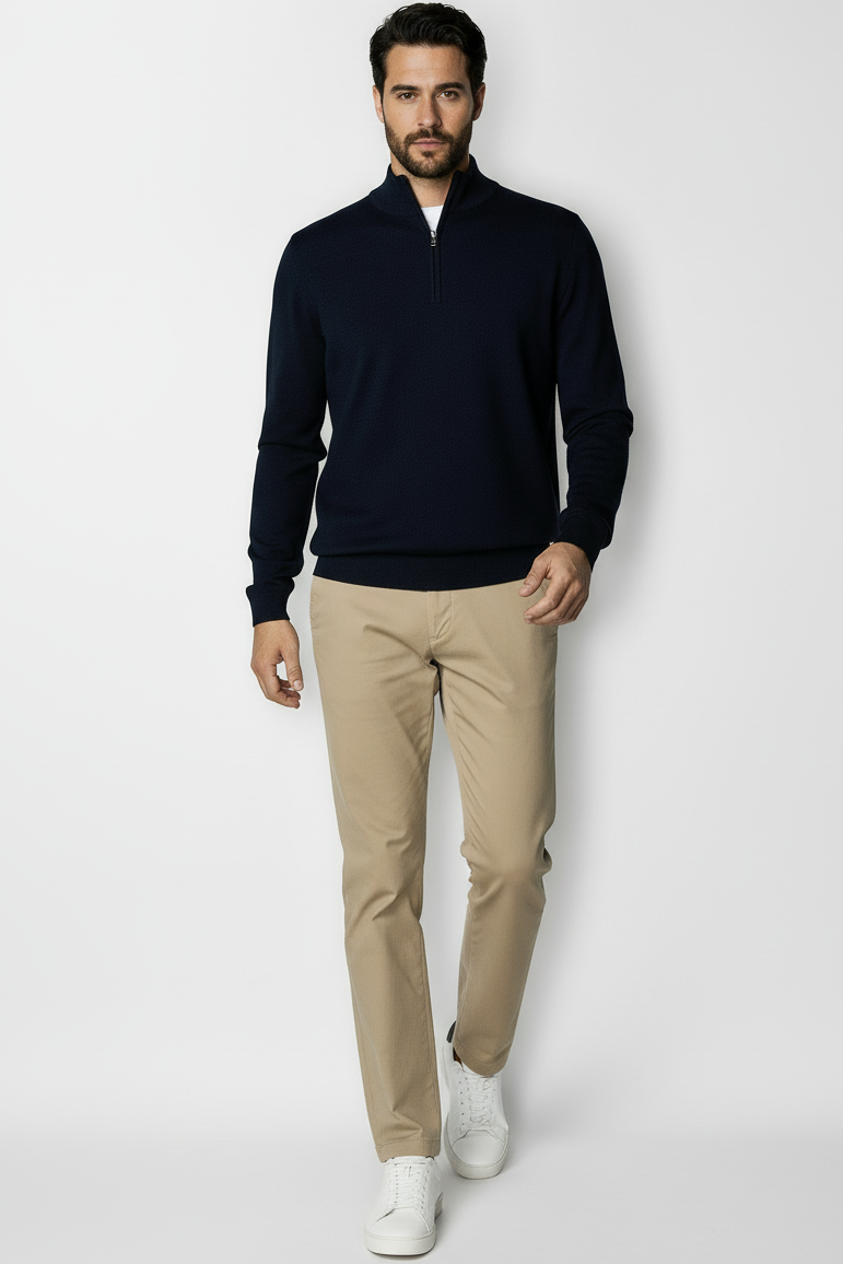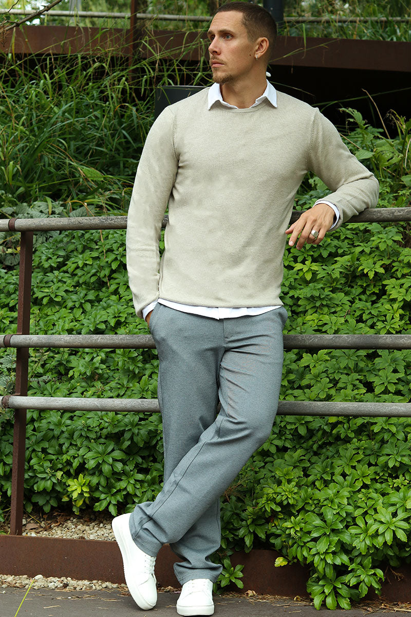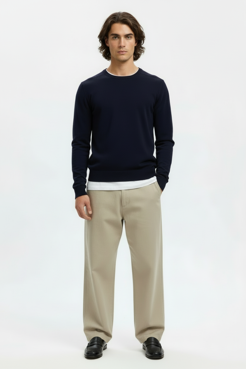 En stickad tröja är mycket mångsidig och kan användas året runt. Den är inte för tjock för en sommarkväll, och samtidigt kan den lätt fungera som översta lagret på vintern när du behöver mer värme. En pullover kan vara superpraktisk över en t-shirt, vilket i kombination med ett par jeans ger den en väldigt avslappnad look. Det kan också vara en del av en mer formell outfit med en skjorta under – det är här tröjan verkligen lyser med tröjans krage och ärmar som ger en kant till outfiten. I kombination med ett par chinos och loafers blir stilen komplett och kan bäras för ett affärsmöte eller en familjesammankomst. Du kan fortfarande behålla den avslappnade looken med en skjorta under genom att till exempel lägga till en skinnjacka och ett par slitna jeans.