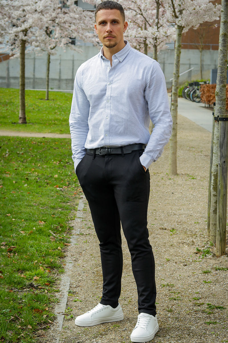 Clean Cut gör naturligtvis byxor för alla tillfällen. Milano byxor är den stora hiten, och vi älskar dem här på 2trendy! De kan kläs upp eller ner beroende på tillfälle och passar sömlöst in i alla moderiktiga mäns garderob. Kombinera dem med en skjorta och loafers för en formell look eller kombinera dem med en t-shirt och snearkers för avslappnad look. Möjligheterna är oändliga, men många av dem börjar med Milano Pants.