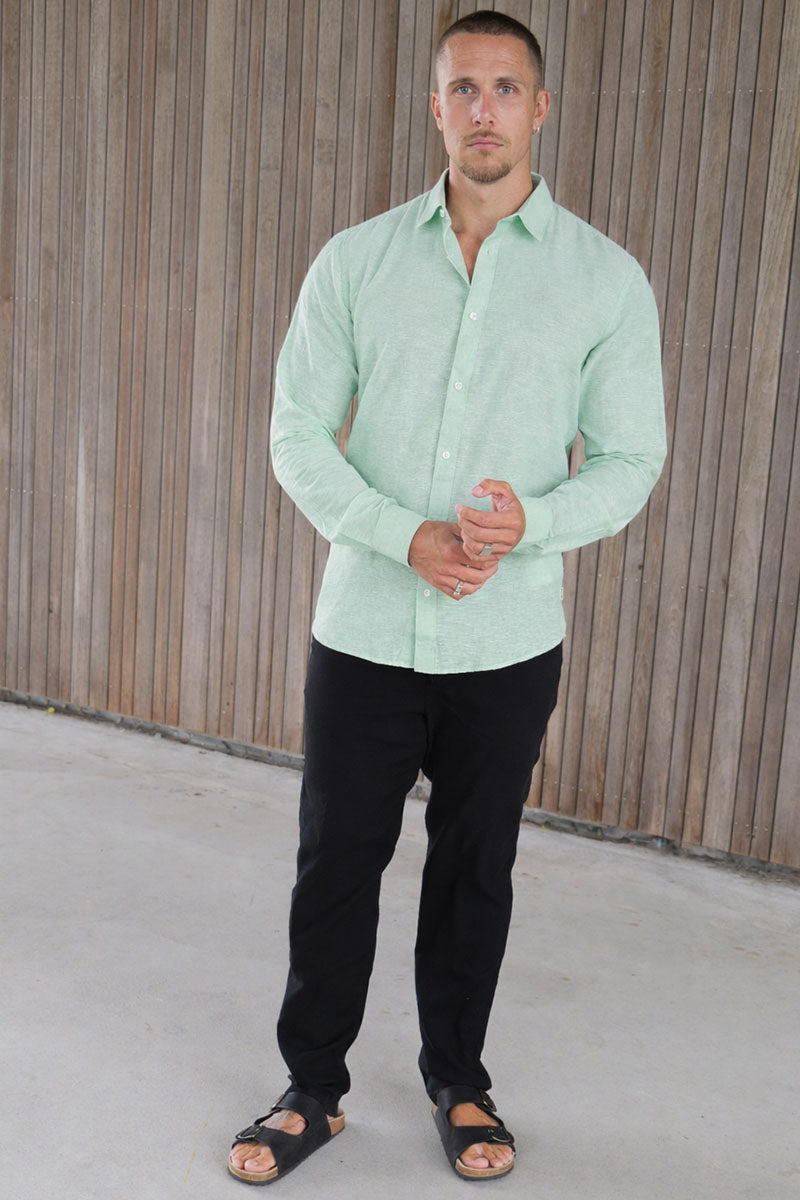 Våra linneskjortor här på 2trendy kan användas för alla tillfällen men passar särskilt bra för de många festliga sommarevenemangen. Oavsett om det är en avslappnaad trädgårdsfest, en klassisk grillkväll eller bara en tur till stranden är du garanterad bra stil med en linneskjorta. Testa till exempel en långärmad linneskjorta med ett par av våra linnebyxor och ett par snygga sandaler. Du kan också ha en helt avslappnad look och prova en av våra kortärmade linneskjortor med ett par av våra linneshorts. det finns många möjligheter – alla har det gemensamt att linne är otroligt bekvämt och reglerar temperaturen bra och snyggt. Vi har både enfärgade, randiga och mönstrade linneskjortor så du kan alltid hitta en som passar dig oavsett om du föredrar en mer avslappnad look eller en mer levande stil. Dessutom har vi linneskjortor med olika typer av krage vilket ger dig ytterligare en möjlighet att göra din outfit mer personlig. Ska det vara en klassisk button-doen, cutaway eller spridd krage eller ska det vara med den populära och snygga mandarinkragen? Valmöjligheterna är många men oavsett vad du väljer kommer du garanterat att uppgradera din stil med en linneskjorta från 2trendy.